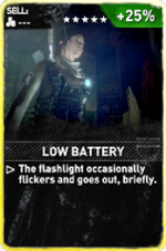 Low Battery is one of the Expedition Cards in Rise of the Tomb Raider to be used exclusively in Cold Darkness Awakened.