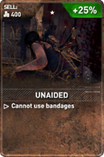 Unaided is one of the Expedition Cards in Rise of the Tomb Raider to be used in one of the Expeditions, like Score Attack, Chapter Replay, Chapter Replay Elite, Remnant Resistance and Endurance Mode.
