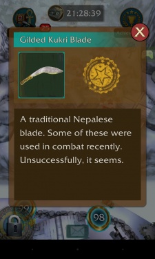 The Gilded Kukri Blade is a Relic found in Lara Croft: Relic Run. It is the 10th relic and can be found level 100, the 20th in the Mountain Pass region, after collecting 20 clues.