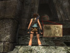 In order to see them, the player must enter the room with a partially collapsed floor and carefully continue towards the ramp that leads up. After Lara has taken a couple of steps along the ramp, a huge Boulder starts rolling down. By watching carefully a glimpse of this Easter Egg might be seen - if not on the first try, then after a few.