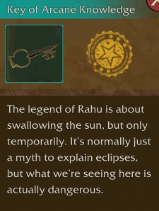 The Key of Arcane Knowledge is a Relic found in Lara Croft: Relic Run. It is the 11th relic and can be found level 102, the 22th in the Mountain Pass region, after collecting ??? clues.