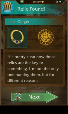 The Lapis Gorget is a Relic found in Lara Croft: Relic Run. It is the eleventh relic that can be found in the Desert Ruins level after collecting 26 clues.