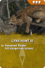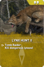 Lynx Hunt is a set of Remnant Resistance Expedition Cards in Rise of the Tomb Raider to be used when designing Remnant Resistance missions. These are objective cards and each tier is associated with a different level of difficulty.