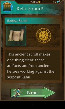 The Rabisu Scroll is a Relic found in Lara Croft: Relic Run. It is the 16th relic that can be found in the Desert Ruins level after collecting 52 clues.