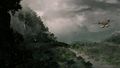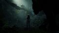The trailer cuts to a small plane flying over a river that winds through a jungle, a mountain range to the left and right. Inside, Jonah tells her: "We have to trust each other." Lara nods. After the next cut, Lara runs away from an exploding generator, then using a zip line. Then she climbs up a rotating puzzle piece. Under water Lara has to fight a moraine. The next cut shows Lara climbing up a tight fissure, then swinging on her rope towards a huge skull carved in the cliff's side.