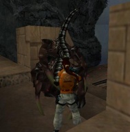 Tinnos Monsters are among the hardest enemies to defeat in Tomb Raider III. They are found only in the Lost City of Tinnos level, and always attack in pairs or in threes. They launch harmful energy balls from their tails. It takes three Rockets (the weapon was designed with these enemies in mind) over around a dozen Desert Eagle shots for them to die. When using a non-explosive weapon to kill them, they will explode when they die.These monsters slightly resemble the hideous and harmful big mutant scientists from the previous level, RX-Tech Mines. Those mutants were halfway through their mutation and still wearing their RX Tech red uniform, so perhaps the Tinnos Monsters are fully mutated versions of these. Either this method, or they were creatures that made their way into the abandoned city and became mutated by the materials inside the meteorite crater.