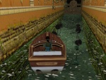 The mines explode when they are in contact with the motorboat that Lara drives. To avoid them, Lara must jump off at the last moment out of the boat, leaving it to impact against them. In this manner, only the boat will set them off, and Lara will escape unscathed. An easier way to get past them is to prevent the mines from exploding. Lara can simply swim through them.