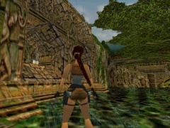 Temple Ruins is the lengthiest level of the India section, and focuses on collecting five Key's of Ganesha. This level also introduces huge Shiva Statues which are only seen in this particular level of the game. Shiva Statues are similar to the Xian of Tomb Raider II. They start out as stone ornaments, and indeed, some are just stone objects, but others come alive when Lara moves to a certain position. They are the first enemies in the Tomb Raider series so far to be able to protect themselves from gunfire. Alive Shiva Statues use their six swords (or Scimitars) to shield themselves from bullets. For this reason, it is best to use the Pistols instead of any other available gun because you might waste ammo on them when they're protected. To lower their swords and continue firing, you must either hang and drop (then pull up) from a ledge (if you're on one) or move around constantly around the floor, until he lowers his sword. You are safe even on a ledge four clicks high (or the size of a normal movable box), and the statues can't hit you from there. When they eventually succumb, they fall over and turn back into statues. Two of the several Shiva Statues will drop a Scimitar each, and these are to be placed upon a third inactive Shiva Statue to open a nearby door.Lara starts this level in a small riverside bank. In the area are two cobra and a switch, which accesses a tunnel below. In this tunnel, are two monkeys, which are now hostile to Lara (although they cause little damage). Lara first must ascend to the tree tops above where she began the level, by climbing up a huge mudslide. Then, she must maneuver past, over and through a waterfall and access the first section of the temple, which contains one inactive Shiva Statue. However, the adjoining chamber, accessed by crawling through a small tunnel, does have an alive Statue, which activates when Lara enters this room through the tunnel.