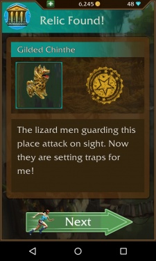 The Gilded Chinthe is a Relic found in Lara Croft: Relic Run. It is the 13th relic that can be found in the Jungle Temple level after collecting 35 clues.