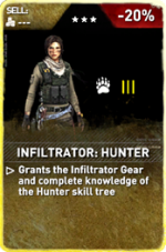 Remark: This article describes the Expedition Card Infiltrator in Rise of the Tomb Raider. For information about the outfit itself, see Infiltrator.